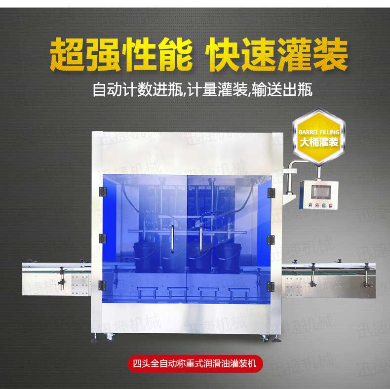 機(jī)油灌裝機(jī)適用于對(duì)4kg-25kg汽車用品類產(chǎn)品:潤(rùn)滑油、防凍液、車用尿素等液體灌裝。自動(dòng)完成計(jì)數(shù)進(jìn)瓶、計(jì)重量灌裝、輸送出瓶等一系列操作。 特別適用于潤(rùn)滑油、水劑、食用油的定量灌裝,是食品,醫(yī)藥,化妝品以及精細(xì)化工等行業(yè)的理想灌裝機(jī)。本機(jī)采用可編程控制器(PLC)、高速工控組態(tài)軟件進(jìn)行實(shí)時(shí)監(jiān)控的控制,使用調(diào)節(jié)方便。整機(jī)按GMP標(biāo)準(zhǔn)要求制作,各管路連接采用快裝方式,拆卸清洗方便,與物料接觸部位及外露部位均采用不銹鋼制造。整機(jī)安全、環(huán)保、安全、美觀、能適應(yīng)各種不同環(huán)境工作。