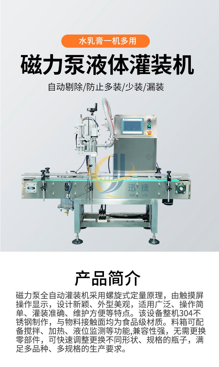 磁力泵全自動灌裝機(jī)采用螺旋式定量原理,由觸摸屏操作顯示,設(shè)計新穎、外型美觀,適用廣泛、操作簡