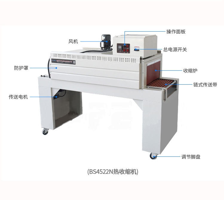 自動(dòng)塑料膜熱收縮包裝機(jī)結(jié)構(gòu)緊湊占地面積小,非常適合配套自動(dòng)包裝流水線完成產(chǎn)品的自動(dòng)無(wú)人化包裝,適合于單個(gè)物品包裝或有底托物品包裝。